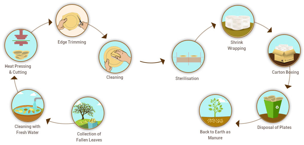 Our products are manufactured from fallen dry sheaths of Betel nut trees. The areca sheath when dried will fall from the tree and it is collected from the farms fresh and used for making products. These sheaths are available in plenty in the South India region. The usage of these leaves was started from our ancestors. We are only making them into attractive shapes to meet the different customer requirements.
